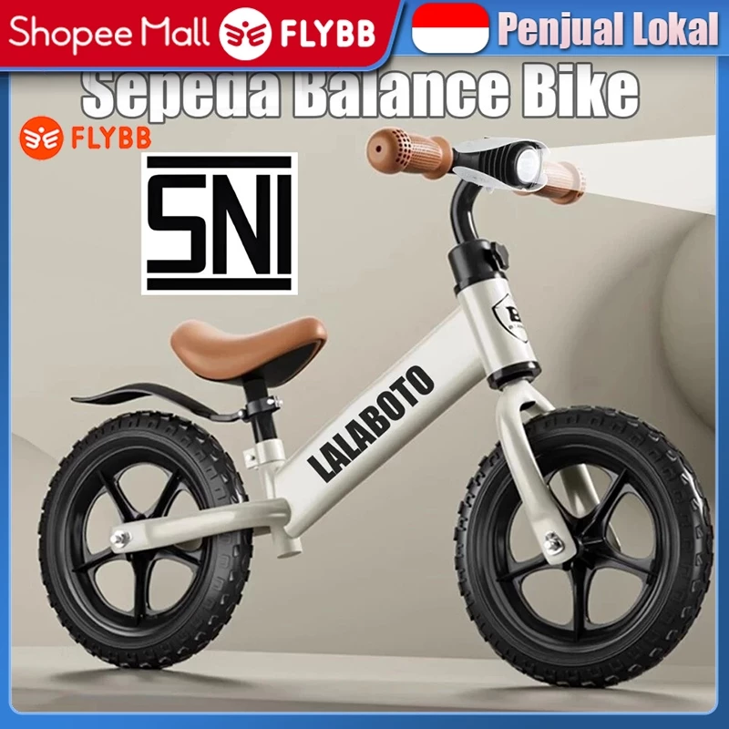 FLYBB Balance Bike adalah sepeda keseimbangan yang dirancang untuk melatih koordinasi dan kepercayaan diri anak dengan menawarkan desain yang modern, ringan, dan fokus pada fitur keamanan, terutama pada area roda.